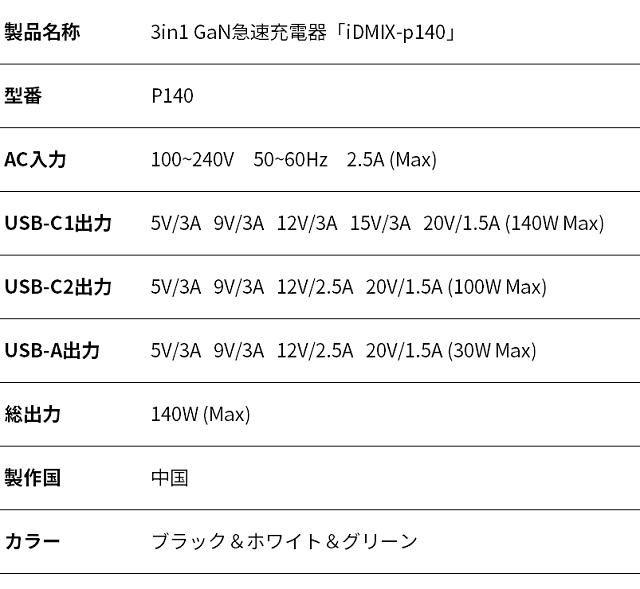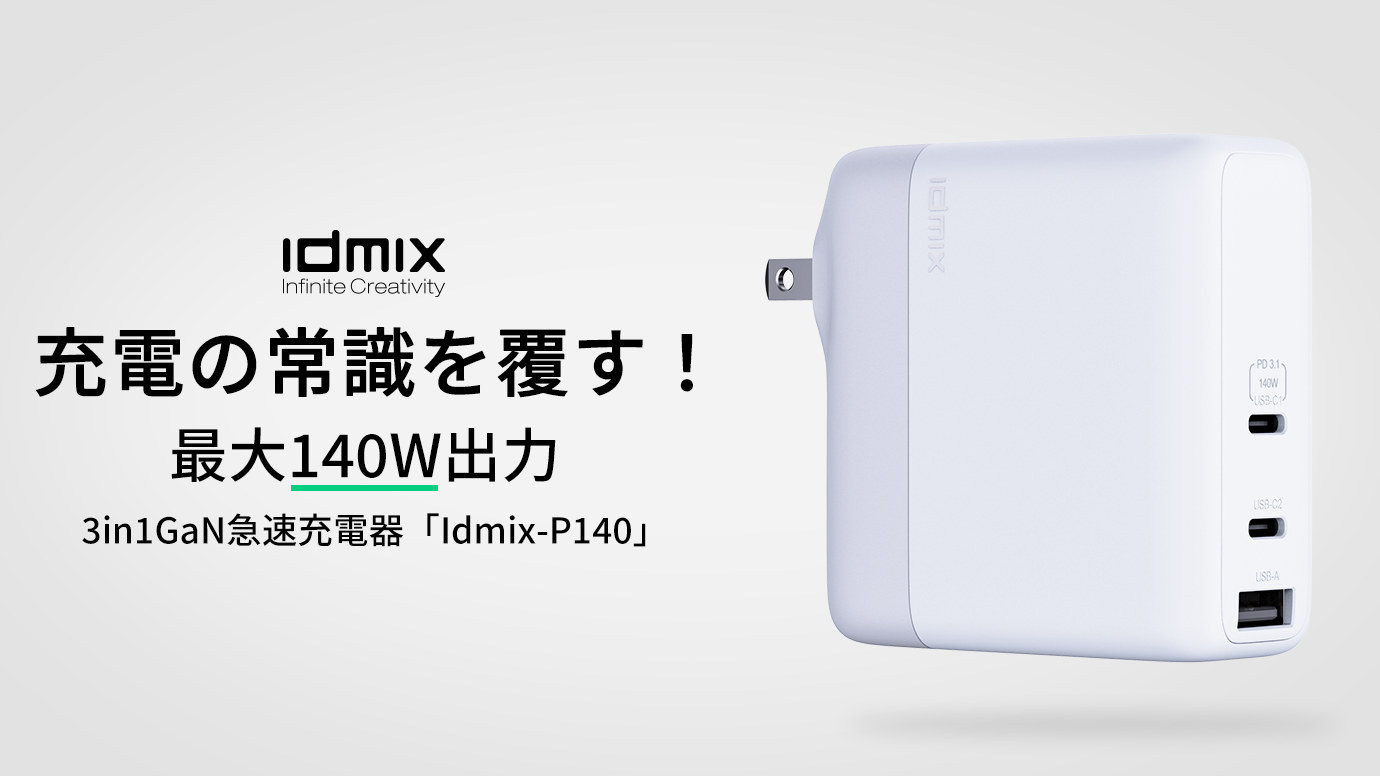 2022年4月25日(月)より、応援購入サービスMakuakeにて、3in1式GaN充電器「Idmix-P140」の先行販売を開始しました。