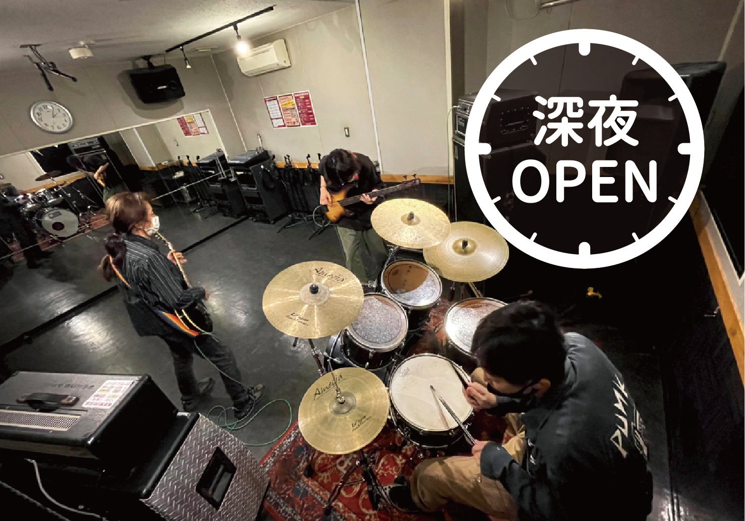 オルフェウスレコーズが運営するリハーサルスタジオ「サウンドスタジオM」ではコロナ禍以前に小岩店でご好評いただいていた「深夜の激安パック」の販売を再開し、一之江店でも新たなプランとして販売開始いたします。コロナ禍に入り現在に至るまで深夜営業の自粛をしていましたが、コロナウイルスが5類に移行したのを機に、ご利用者が増え“予約が取れない”“予約を取りたい時間に営業をしていない”というお客様のお声も増えてきました。多くのミュージシャンの練習する機会を増やす為、深夜の営業を開始する運びとなりました。