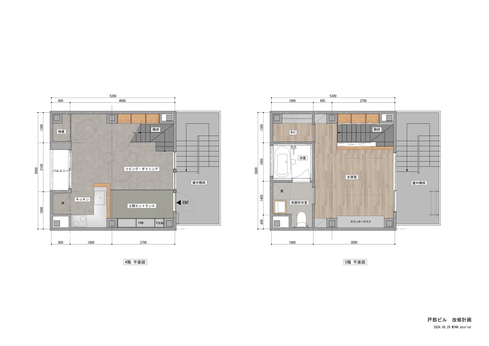 4-5階 メゾネット住居区画:53.0㎡(壁芯面積) ※SOHO可