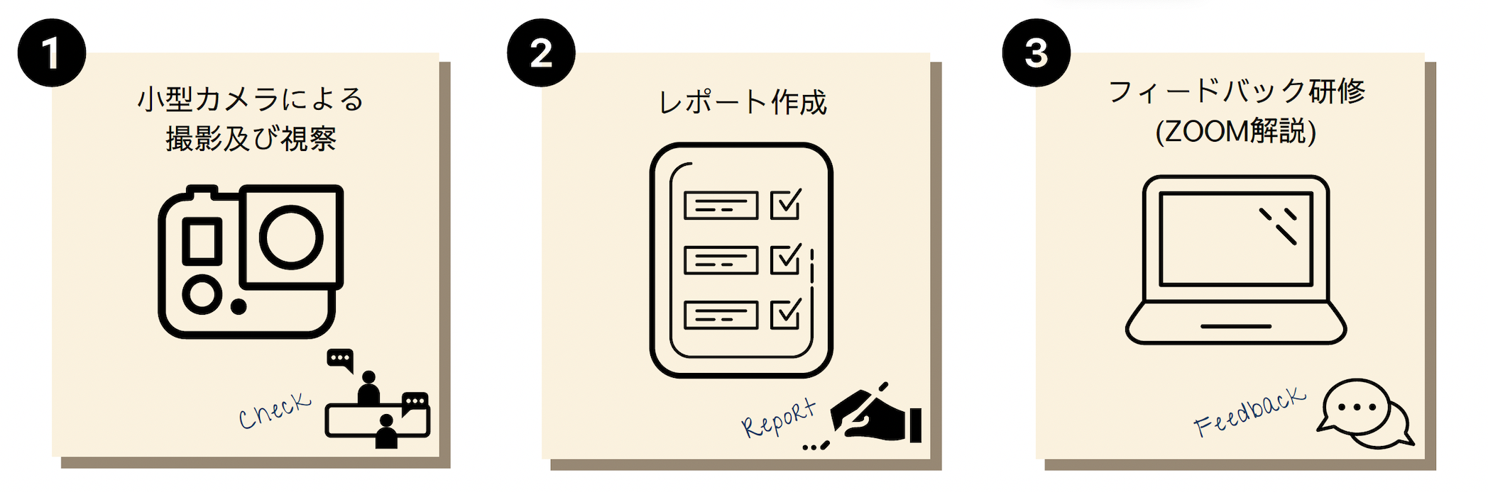 - オンラインによるフィードバック研修で、スタッフへ直接、改善点やアドバイスをお伝えします。