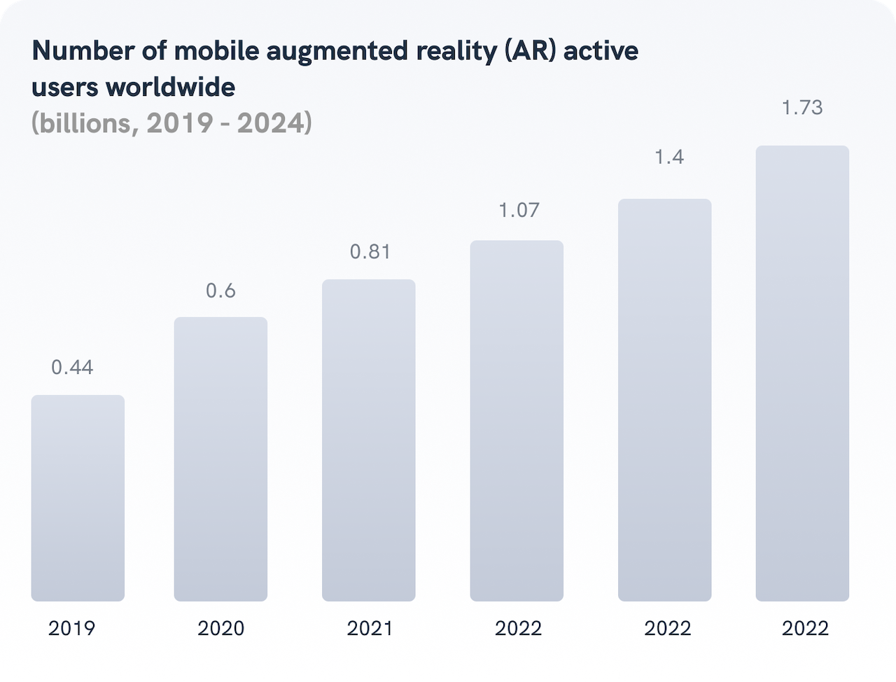 ティム・クック(Appleの最高経営責任者)は、ARについて次のように語っています。 「ARは文字通りあなたの手の中にあるのです。それを起動するにはヘッドセットやコンピュータは必要なく、スマートフォンで行います。実際、最近のスマートフォンにはAR技術が搭載されているため、アクティブなARユーザーが増え、ARの認知度は世界的に広がっています。」