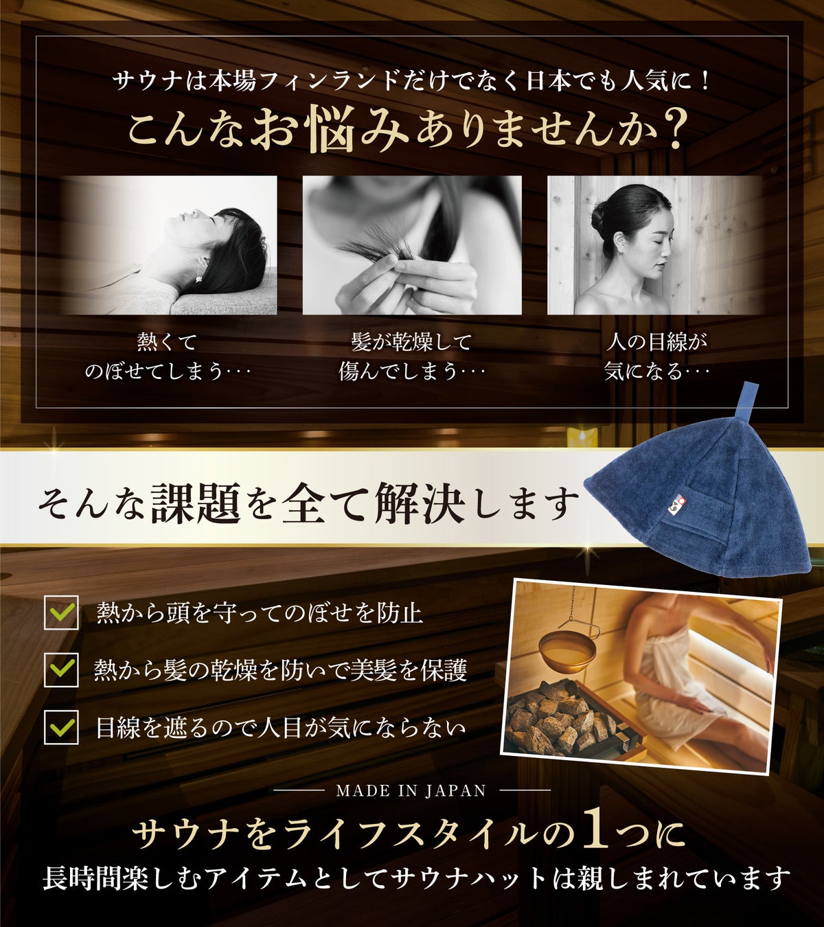 サウナがライフスタイルの1つになっている今日、「長時間楽しめるサウナハット」として開発されたのが本商品になります。