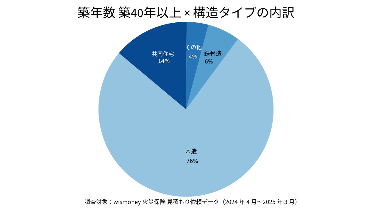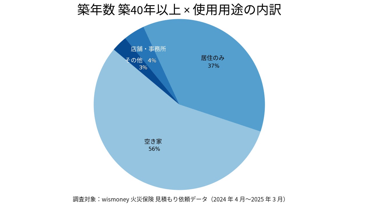 Mt.flowers株式会社(本社:東京都江東区)が運営する火災保険一括見積もりサービス「wismoney(ウィズマネ)」は、2024年4月〜2025年3月に寄せられた982件の見積もり依頼データをもとに、住宅の築年数と使用用途・構造に関する傾向を分析しました。