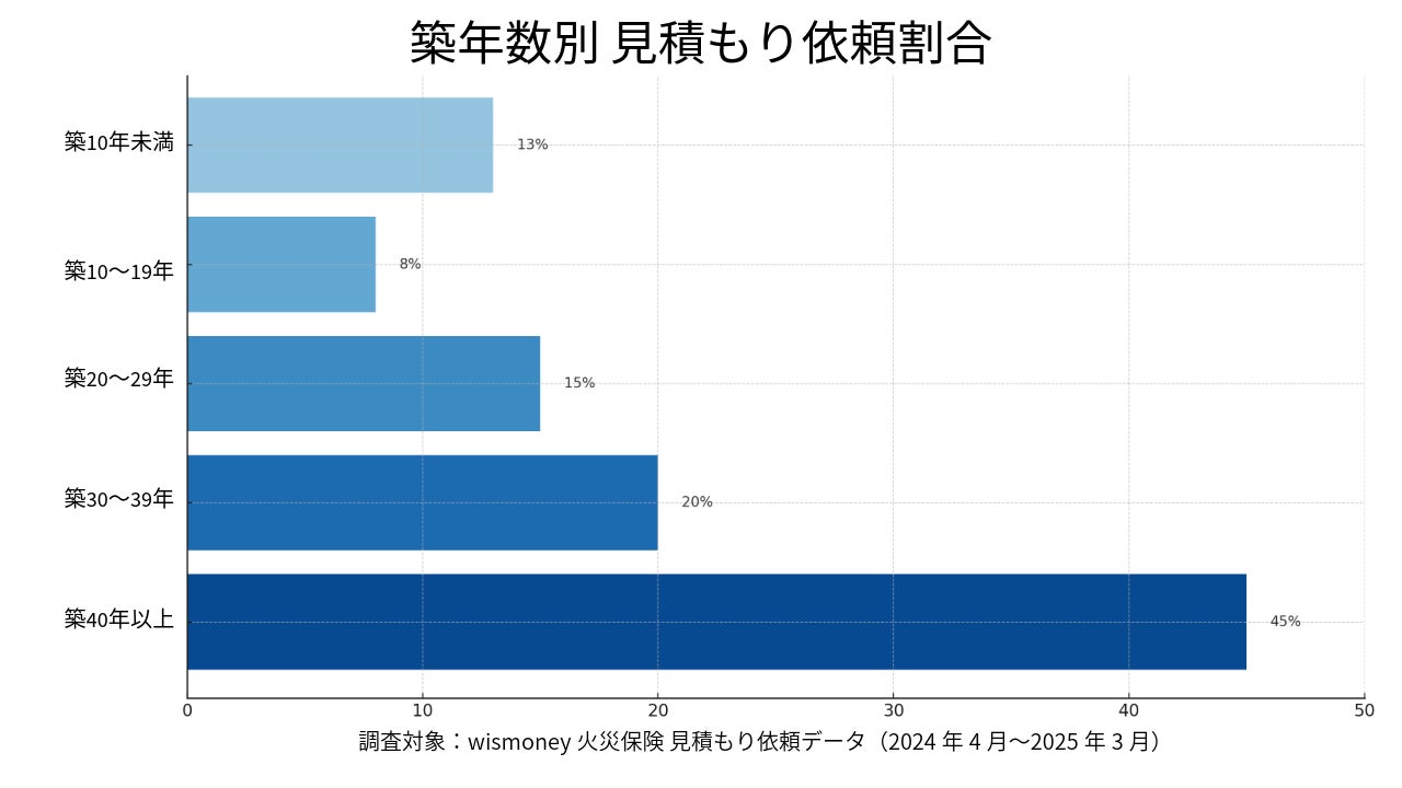 2024年4月〜2025年3月の見積もり依頼データ982件を分析し、住宅ストックの高齢化と火災保険ニーズの関係を可視化