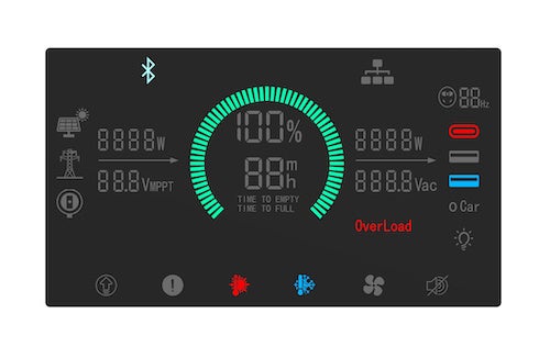 業界最速クラスの充電アルゴリズムを搭載し、フル充電までわずか2時間を実現。災害に備える緊急充電にも素早く対応できます。また、エネルギー変換効率が22%を超える高性能パネルを採用したASAGAO 200Wソーラーパネルで充電することで、最短6時間程度(理論値)でフル充電が可能です。本体を充電しながら全ての出力も可能です。更に車のACC電源からも充電可能。移動中など効率的な充電が可能です。