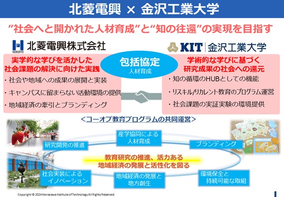 産学連携によって“企業の持つ知”と”大学の知”を結び、自己実現のさらに一歩先へ踏み出すための社会へと開かれた人材育成を目指す。北菱電興株式会社と金沢工業大学が包括連携協定を締結