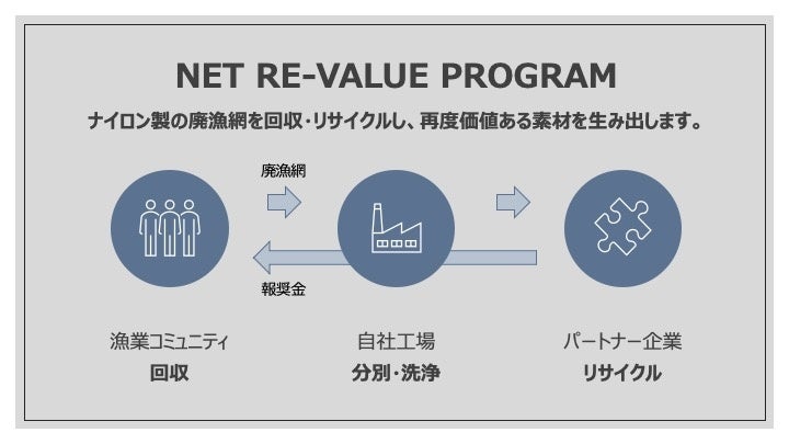日本全国の漁業者より地元で直接、使用不可能となった廃漁網を買い上げるリサイクルプログラムです。