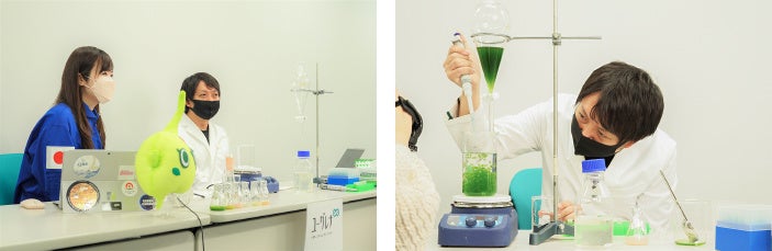 「ミドリムシの観察」や、「ミドリムシボール作りの実験実演」に大盛り上がり。