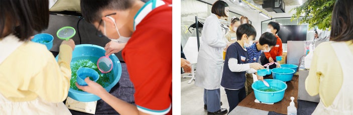 「ミドリムシボールすくい」の体験などもあり、子供たちは宇宙での活用が期待されるミドリムシの最先端を体験し楽しく学び大盛況の中、幕を閉じました。