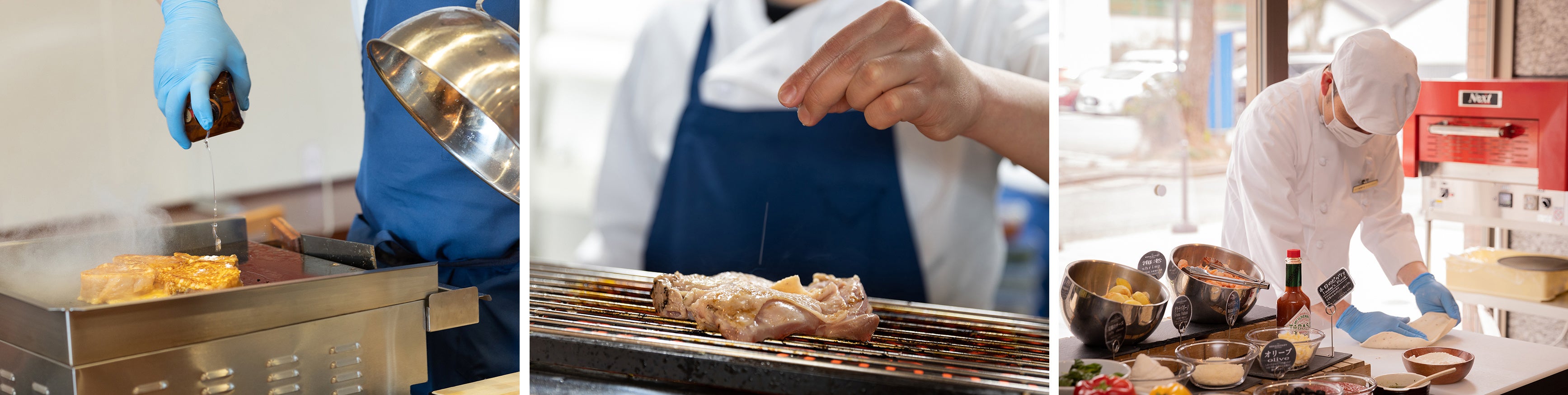 「カリッ・フワッ・トロッ」な“賞味期限100秒”のフレンチトーストや低温調理した鶏肉を秘伝のタレでその場で焼き上げ、様々な食べ方を楽しむ「とりまぶし」、地元の漁港直送の魚介溢れる海鮮丼、具材を選んでからスタッフが手づくりするピザやサラダなど、料理人が目の前で調理する味にも演出にもこだわった朝食を提供します。さらに全国的に人気が高まる糸島食材を使ったメニューやブランド明太子の食べ比べ、極上の卵をつかったプリンやたまごかけご飯など、九州の美味しい食材を味わえるバラエティー豊かなメニューを取り揃えています。