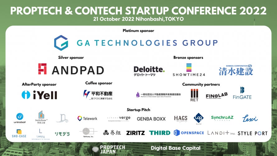 カンファレンススポンサー:<プラチナスポンサー>株式会社GA technologies <シルバースポンサー>株式会社アンドパッド <ブロンズスポンサー>デロイトトーマツコンサルティング合同会社、ショウタイム24株式会社、清水建設株式会社