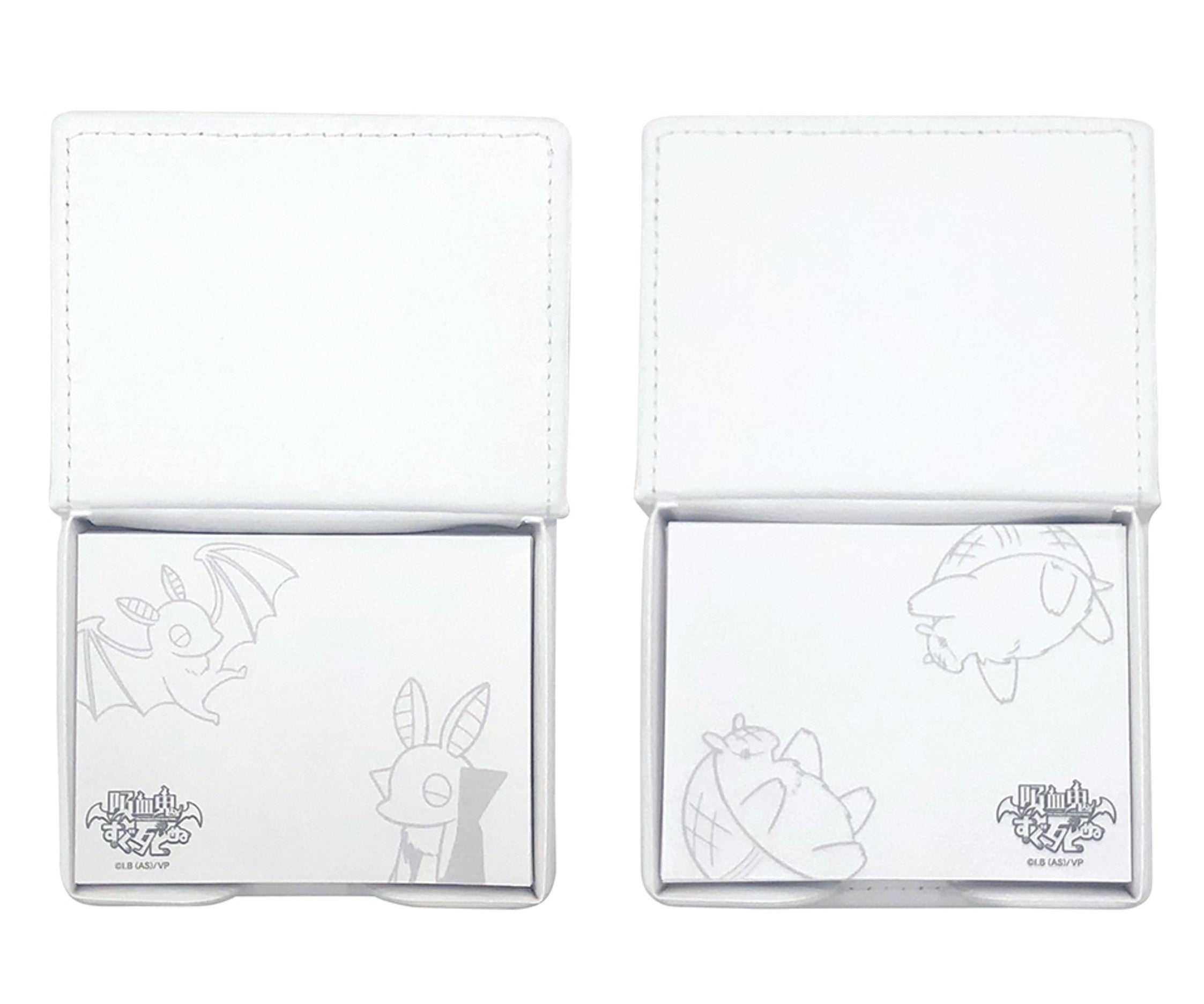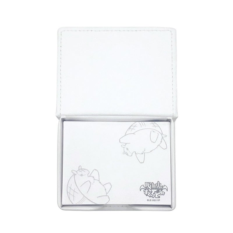 描き起こしイラストを使用したメモボックスです。変身失敗したドラルクと使い魔のジョンがケースにもメモ用紙にもかわいらしくデザインされています。