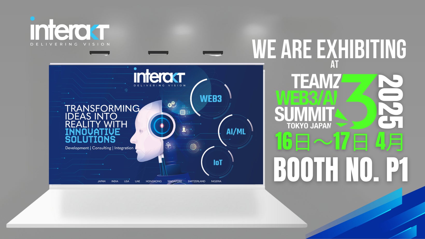 最先端のITソリューションを提供する株式会社Interakt(東京都渋谷区、代表取締役:塚本愛乃、以下Interakt)は、2025年4月16日〜17日に東京で開催される「TEAMZ WEB3/AI SUMMIT 2025」に出展します。Web3、ブロックチェーン、AI、IoTを専門とする当社は、本イベントを通じて革新的な技術とソリューションを発信いたします。