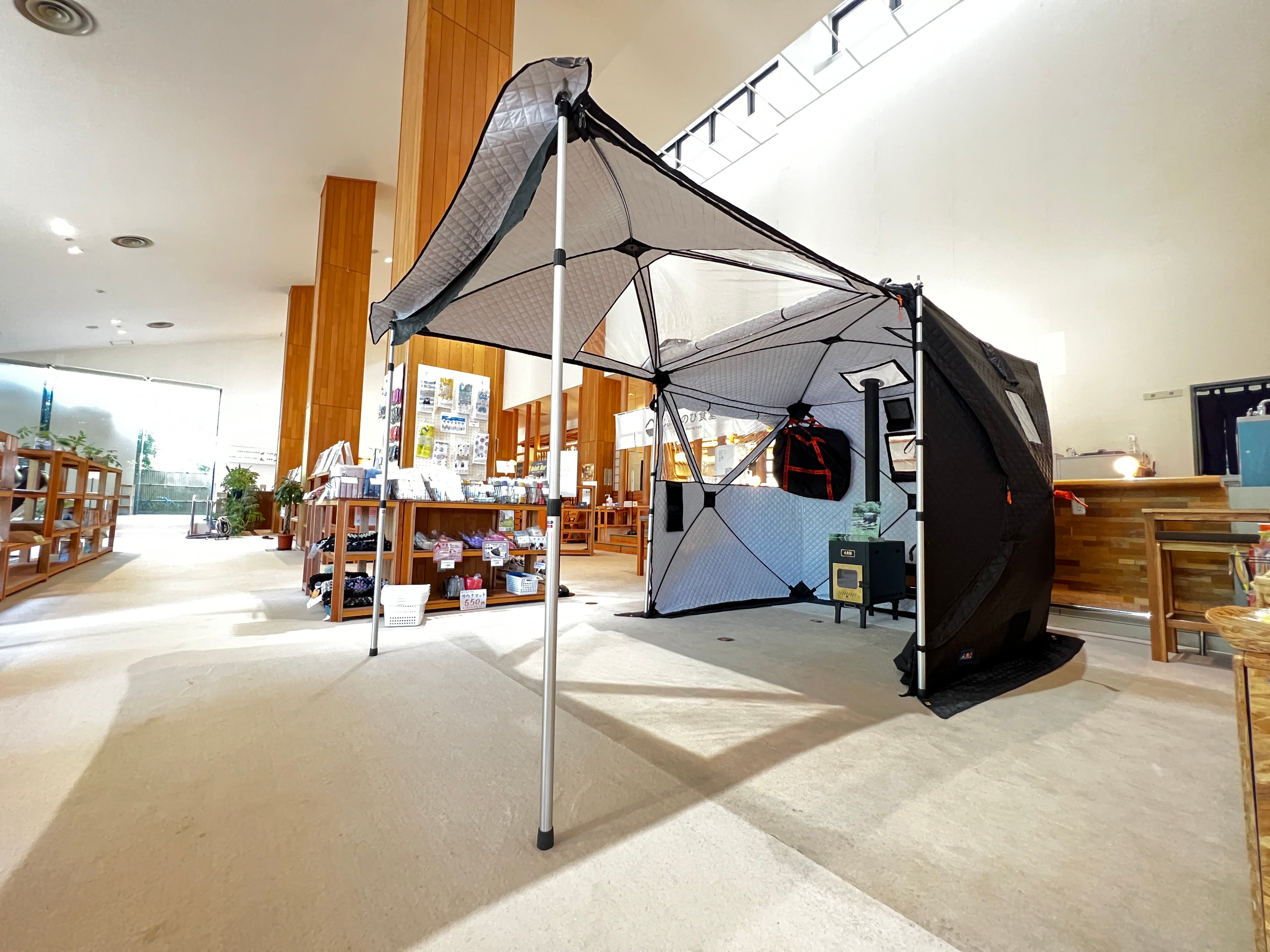 このテントは、テントサウナをしたあと、そのままキャンプができるんです!