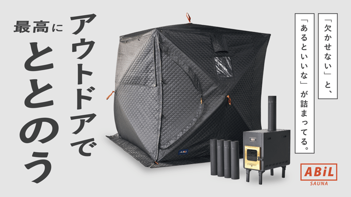 サウナもキャンプも一台二役!高い熱効率を実現する構造!ABiLのテント&ストーブが特別価格にて先行販売開始!