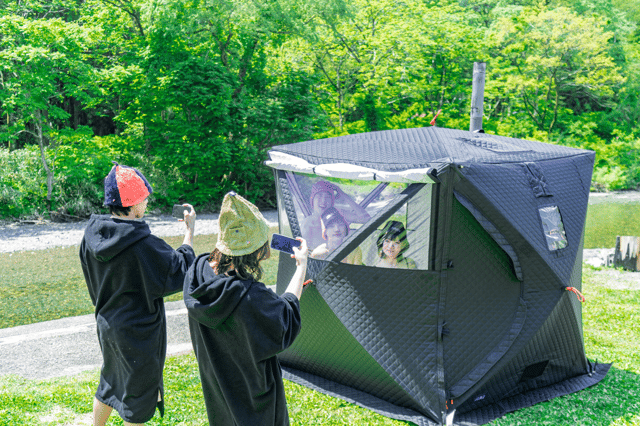 サウナの後も遊び場となり、社交場になるテントサウナ。心地よい場をつくってくれるように思いを込めて開発しました。