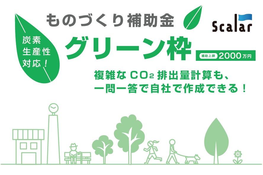 Scalar株式会社(本社:東京都渋⾕区、代表取締役:吉⽥光志)は、同社が提供する補助⾦申請書の作成⽀援クラウドサービス「ScalarSelf(スカラーセルフ)」において、「ものづくり・商業・サービス⽣産性向上促進補助⾦(以下、ものづくり補助⾦)」の<グリーン枠>に対応いたしましたので、お知らせいたします。