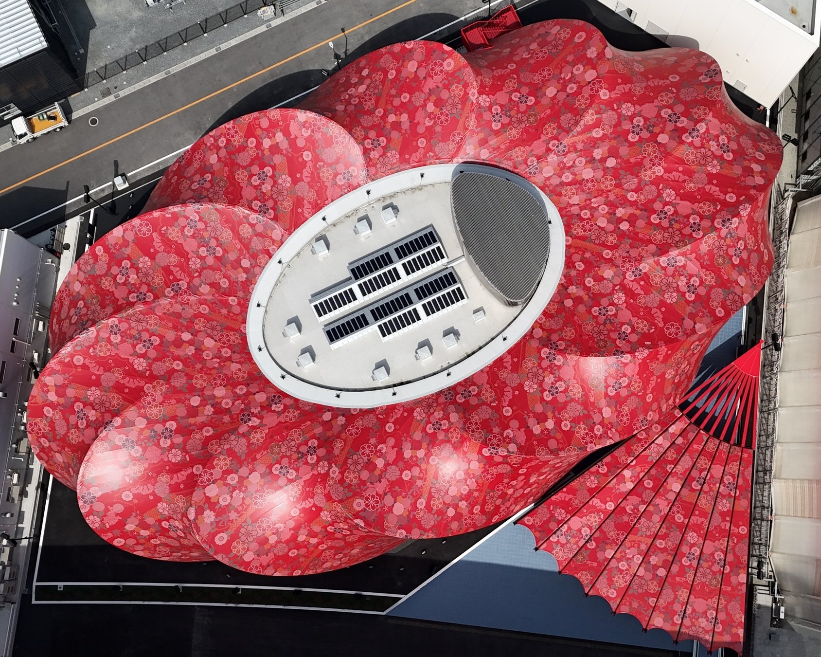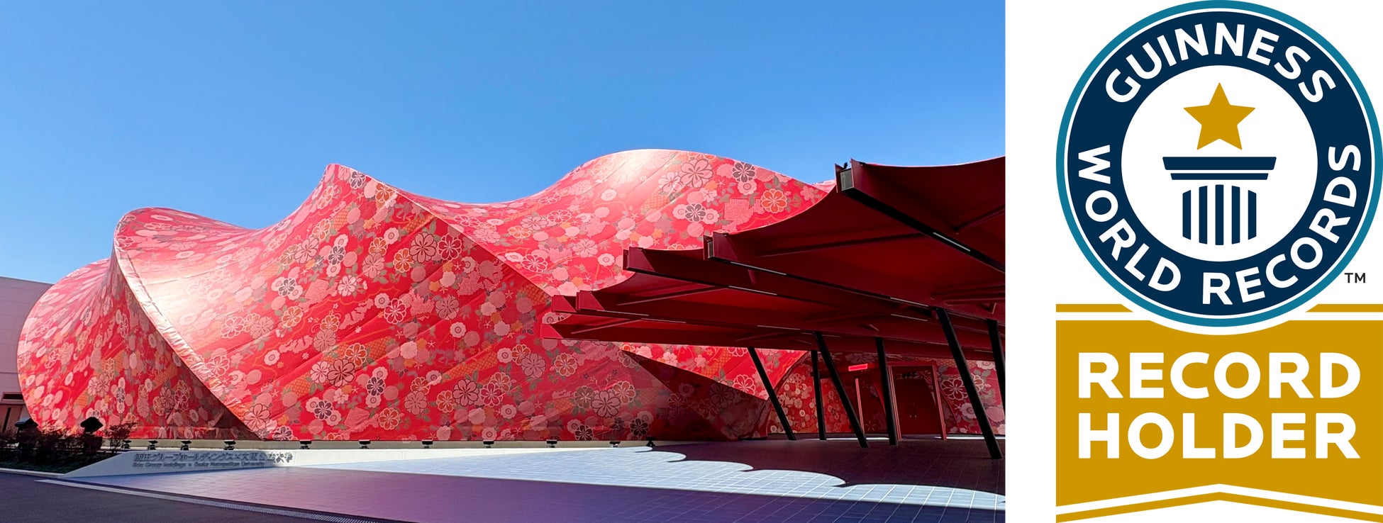 「世界最大の西陣織で包まれた建物」及び「世界最大の扇子形の屋根」の2記録
