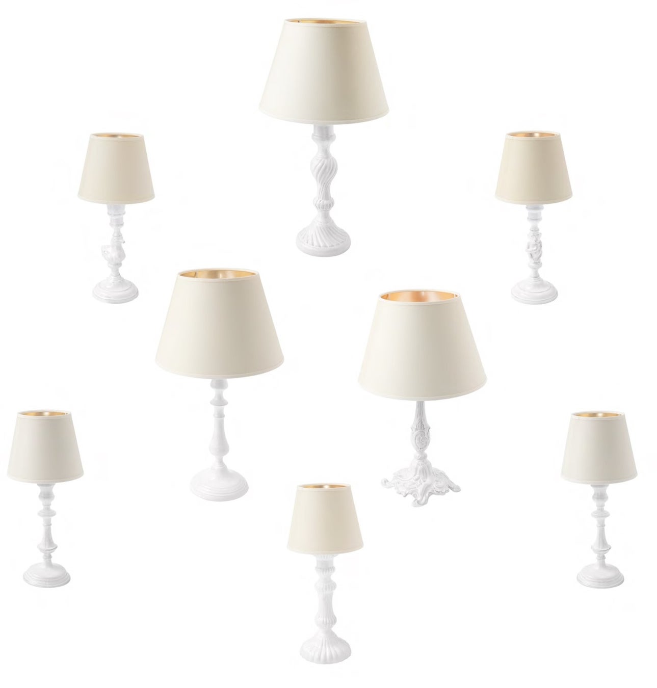 高い評価を得たシャンデリアに続き、アスティエ・ド・ヴィラットが創作したのは、同じ系譜のスタンドランプコレクションです。白い陶器のすらりと長い足には、燭台のモチーフを再現した装飾が施されています。フランス製のシェードは、裏地無し、あるいはゴールドの裏地付。オフホワイト系で、 純白よりも明るく温かみを感じさせます。用途に合わせて2サイズから選べるため、リビングルームやデスク、ベッドサイドランプにもぴったりです。全12種類:最も精巧な細工を施したトム。あまりにもシックなモンキー&ダック。ねじり編みのペギー。最も厳かなイスタンブール。フルーティングモチーフのジゼル。スクエアな足のアマルフィ。