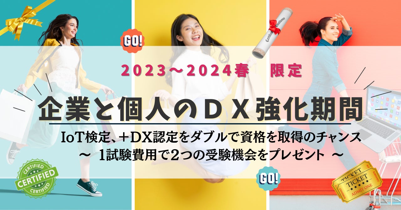 【期間限定キャンペーン】企業と個人のDX推進力を向上させるためのダブル取得キャンペーン 〜IoT検定と+DX認定試験が1試験費用で2つの検定の受験機会をプレゼント〜