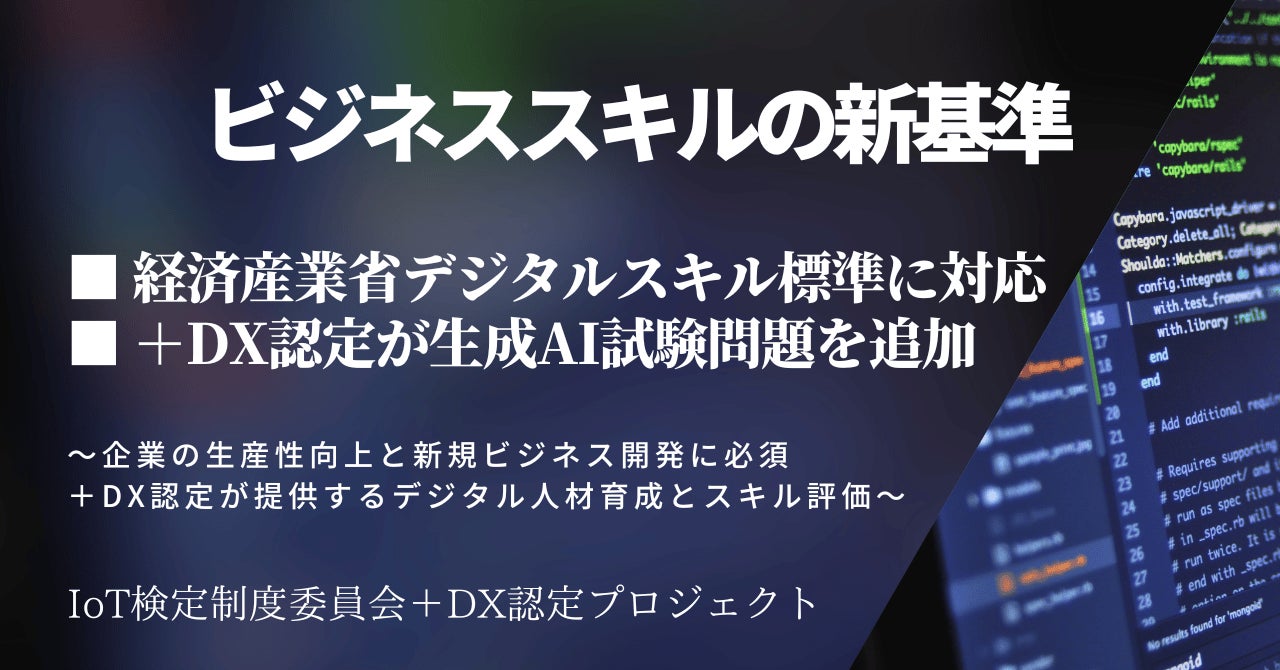 IoT検定制度委員会+DX認定プロジェクトは、本日、+DX認定試験の重要な更新を発表しました。この発表には、経済産業省が策定するデジタルスキル標準への対応と、生産性向上および新規ビジネスに不可欠な生成AI領域の問題追加が含まれます。デジタルスキル標準への対応:+DX認定は、経済産業省が定めるデジタルスキル標準に基づき、そのカリキュラムと試験内容を完全に更新しました。このステップは、業界におけるデジタルスキルの基準を高め、組織内でのスキル標準化を推進するための重要な取り組みです。生成AI領域の問題追加と試験概要の変更:最新の更新により、+DX認定は生成AIのスキル評価を取り入れます。これにより、デジタルトランスフォーメーションの推進に不可欠な生成AIに関する知識と技術の習得を試験で評価します。これは、技術進歩に伴う市場の需要に応えるための重要な一歩です。+DX認定のこの重要な更新は、デジタルスキルの普及とビジネス環境の進化に対応するためのものです。私たちは、これによりビジネスの生産性向上、新規ビジネスの開発、そして社会全体のデジタル化への適応を促進できると信じています。