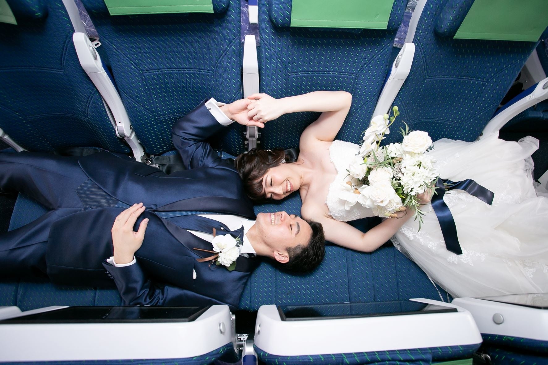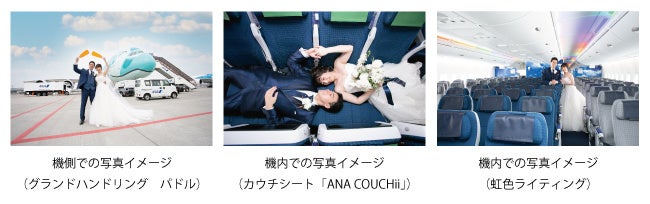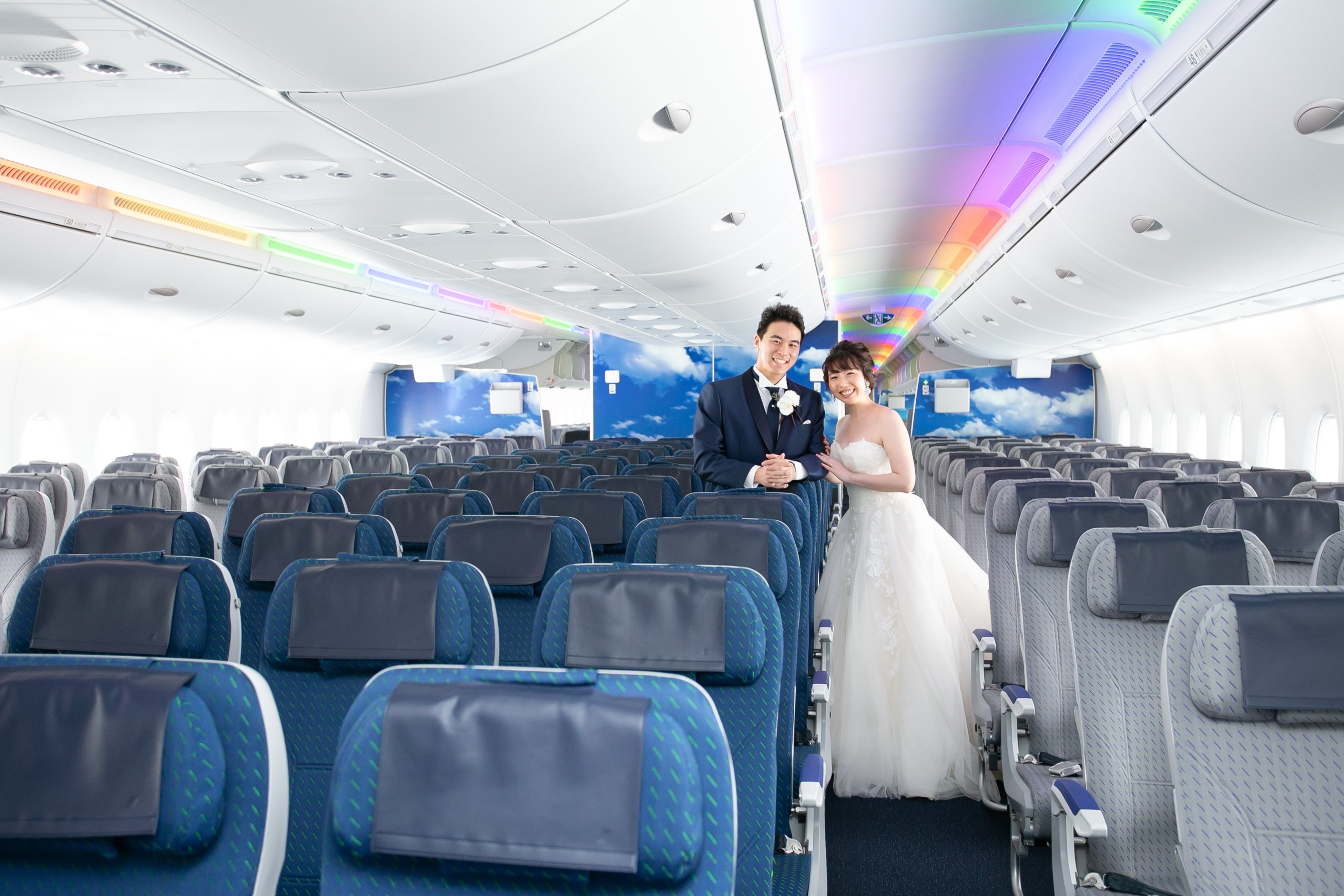 スケジュール: ANAクラウンプラザホテル成田にてタキシード・ドレスにてお支度→成田国際空港へ車で移動→機側・機内にて撮影(撮影時間:約1時間半)→ANAクラウンプラザホテル成田へ移動→終了