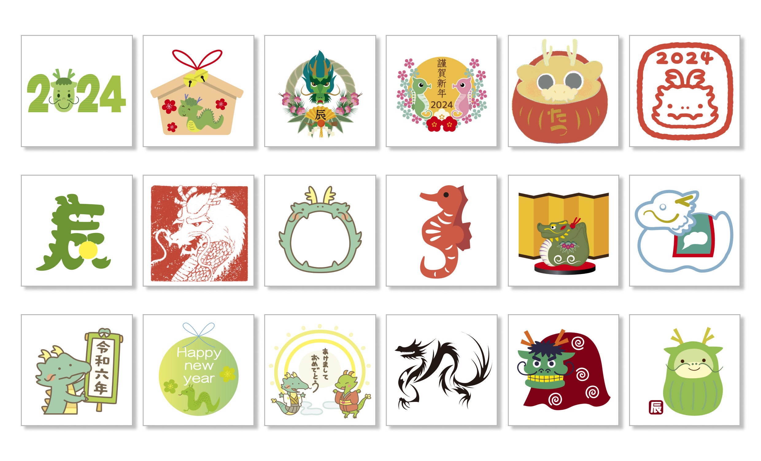 ACワークス株式会社(大阪市西区:https://acworks.co.jp/)運営の年賀状素材サイト『年賀状AC』が、2024年の 年賀状テンプレートやイラスト素材 約5,200点を10月30日に無料公開しました。