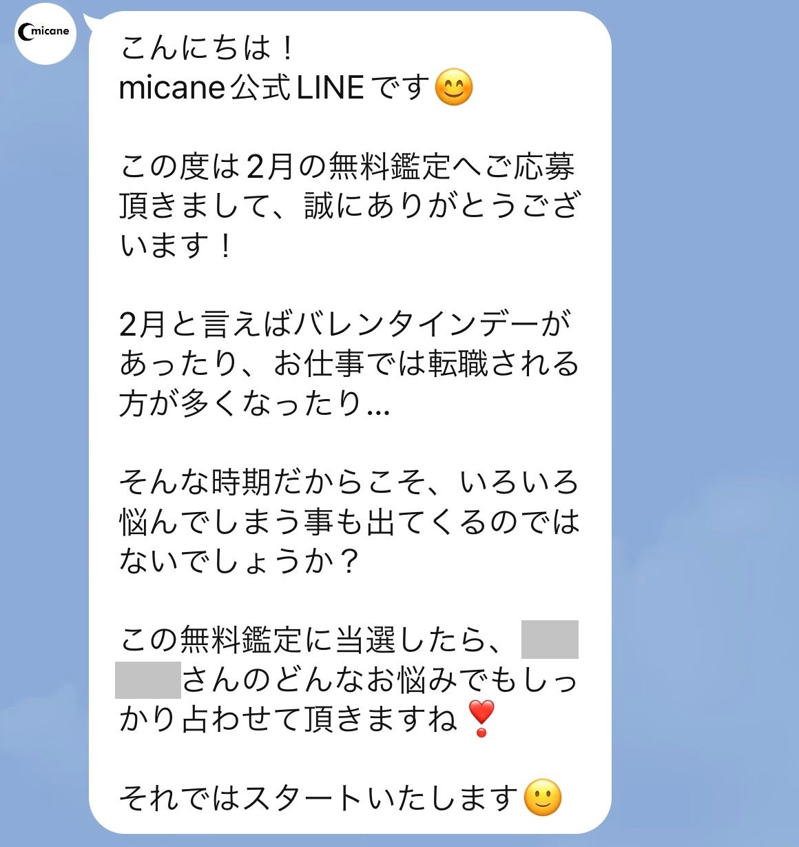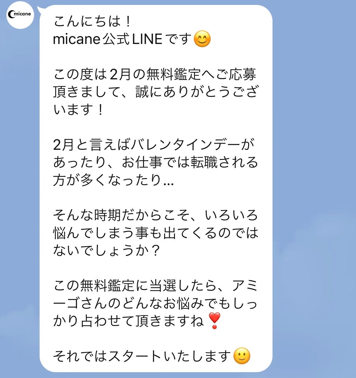 ▼micane公式LINE@に友だち登録で今月の運勢(2月)を無料で占う!▼