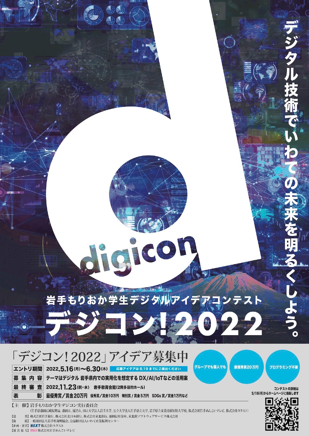 岩手もりおか学生デジタルアイデアコンテスト「デジコン2022」は、岩手県内の産学官が連携して開催する、