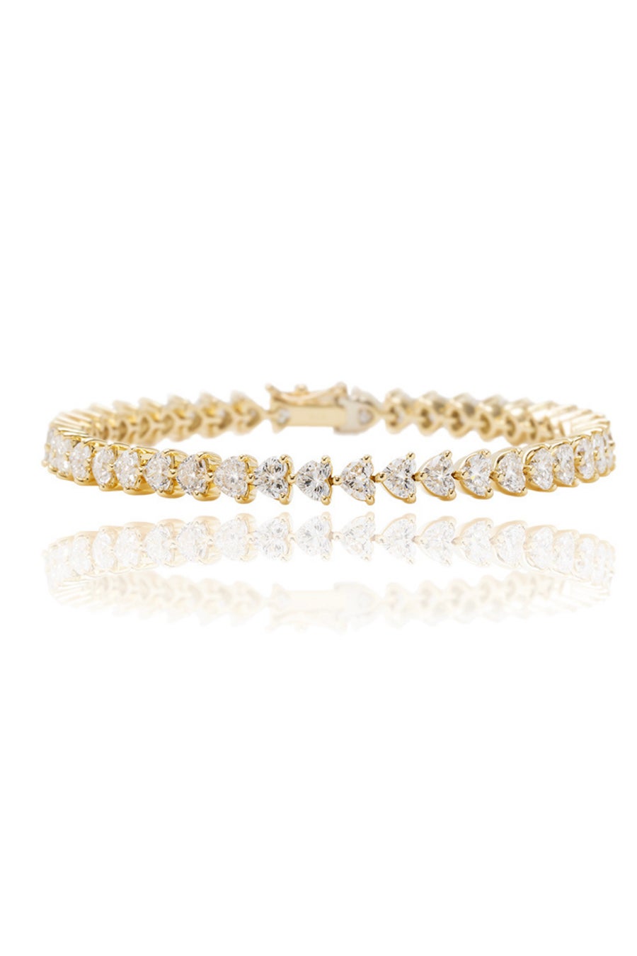 ハート型のダイヤモンドを贅沢にセッティングし、贅沢な輝きが手首を纏う