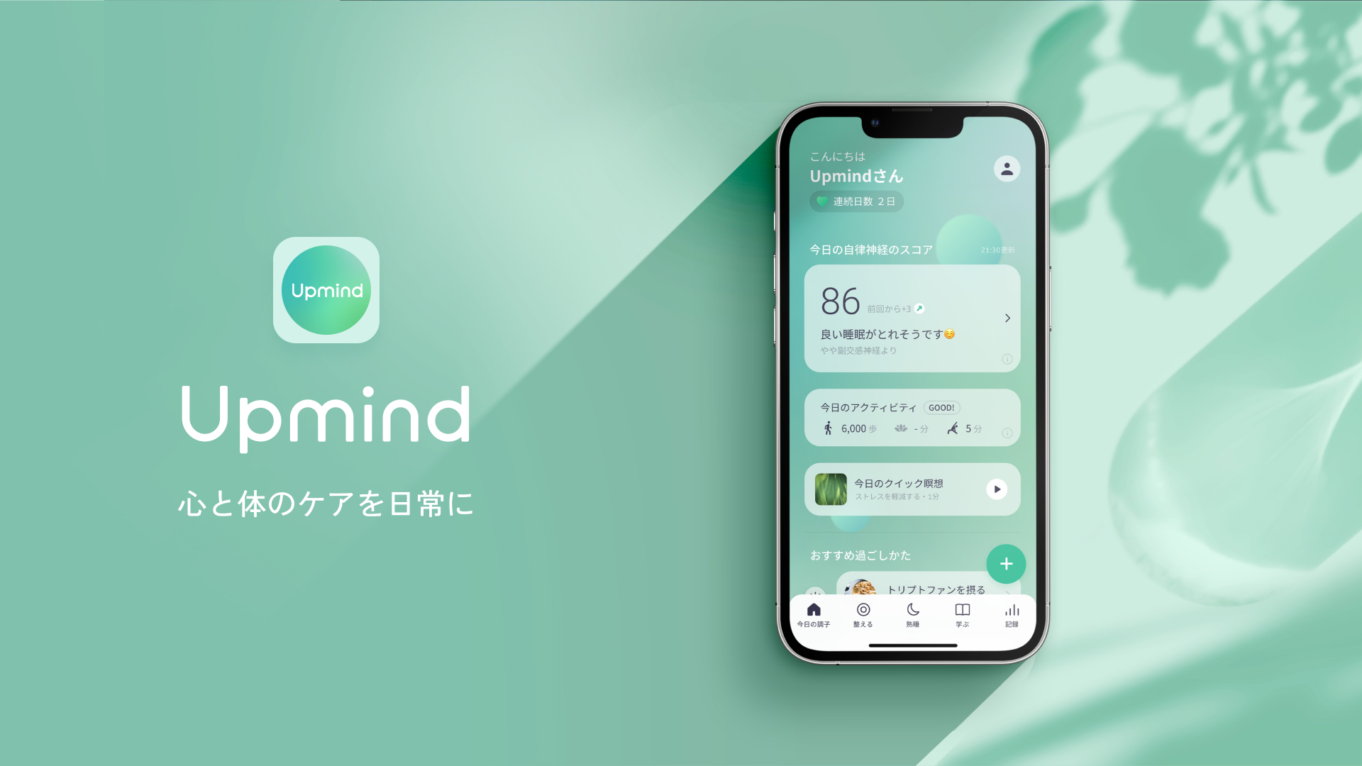 Upmind株式会社は、2021年5月に設立したウェルビーイングテックカンパニー。心と体が