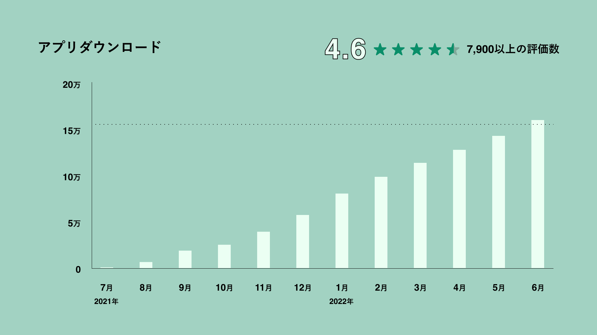 これまでマインドフルネス・心のケアに興味がなかった方にも、落ち着きのあるUI/ UX・手短な瞑想やヨガのプログラムが好評で、これまでに15万人以上が利用、アプリストアでのレビュー数は7,900超、評価も4.6と高評価を頂いております。”日本発のマインドフルネスアプリ”としてダウンロード・レビュー数NO.1*まで成長してきました。