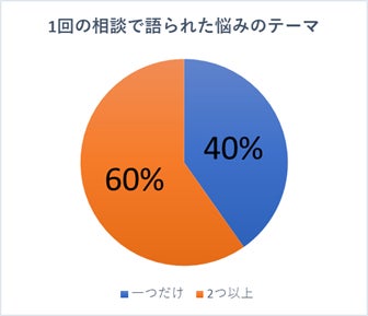 今回の調査では、1回の対話支援において、半数以上が複数のテーマを悩みの本質としていることが明らかになりました。