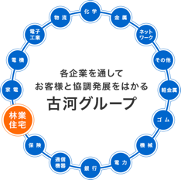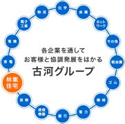 私たち古河林業は、そのグループの中核企業であり、グループ各社との緊密な連携のもと、林業と住宅業、2つの事業を通じて社会に貢献しております。