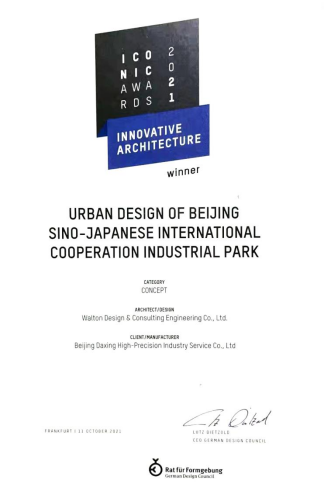 近頃、北京中日イノベーション協同モデル区(以下「モデル区」といいます。)の都市計画は、「ICONIC AWARDS 2021: Innovative Architecture」を受賞しました。ICONIC AWARDSは、ドイツデザイン評議会によって1953年に立ち上げられ、世界で最も重要で専門的なデザインおよび建築賞の1つです。この賞は、建築デザインの全分野をカバーし、包括性と双方向性を重視することで知られており、世界で最も創造的な建築とデザインを表彰し、認めることを目的としています。