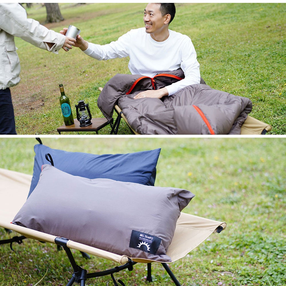 カポックは、樹木を伐採することなく木の実から採取されます。栽培に農薬や化学肥料を使うことがないため、とてもサスティナブルな素材です。そんなカポックの重量はコットンの8分の1。軽量で、通気性と保温性に優れ、快適な温度を保つので、まるで天然の羽毛でつくられたような寝袋を体感できます。