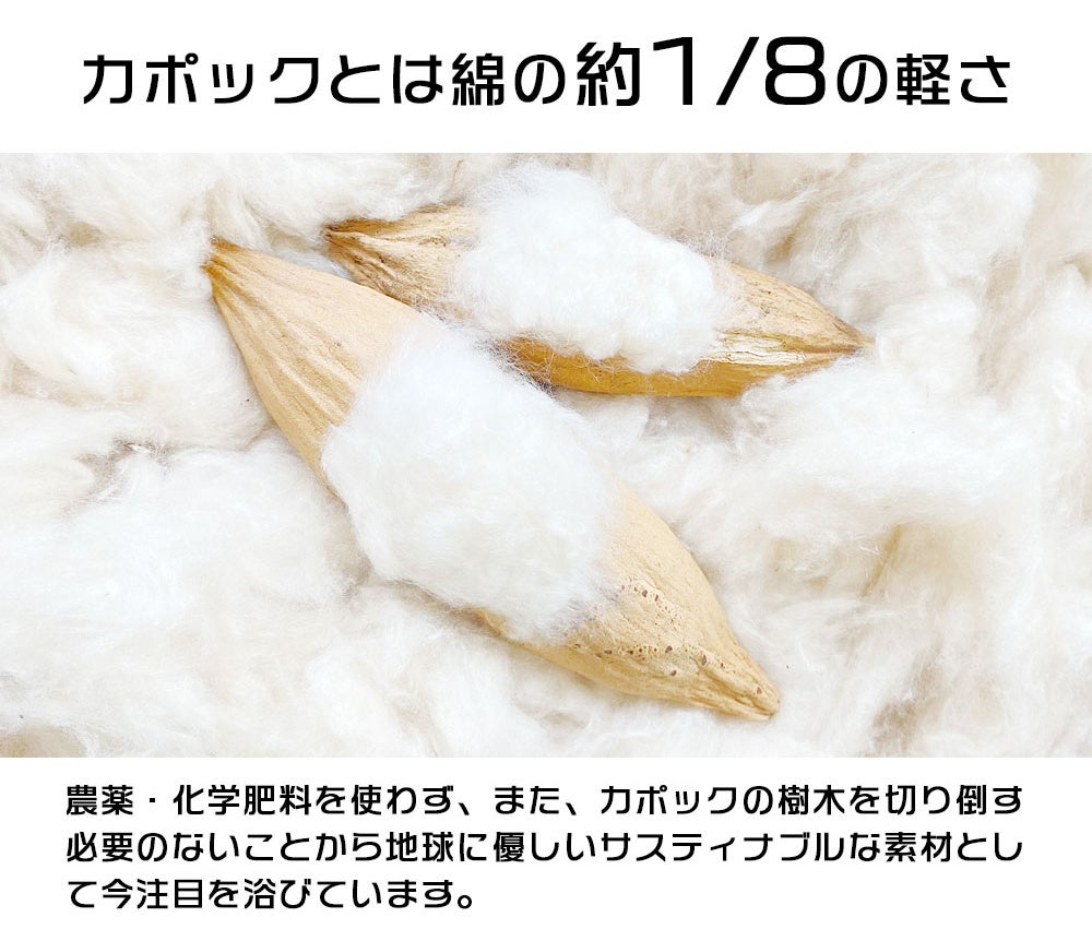 樹木を伐採せずに収穫できる天然素材カポックは、まるで羽毛(ダウン)!