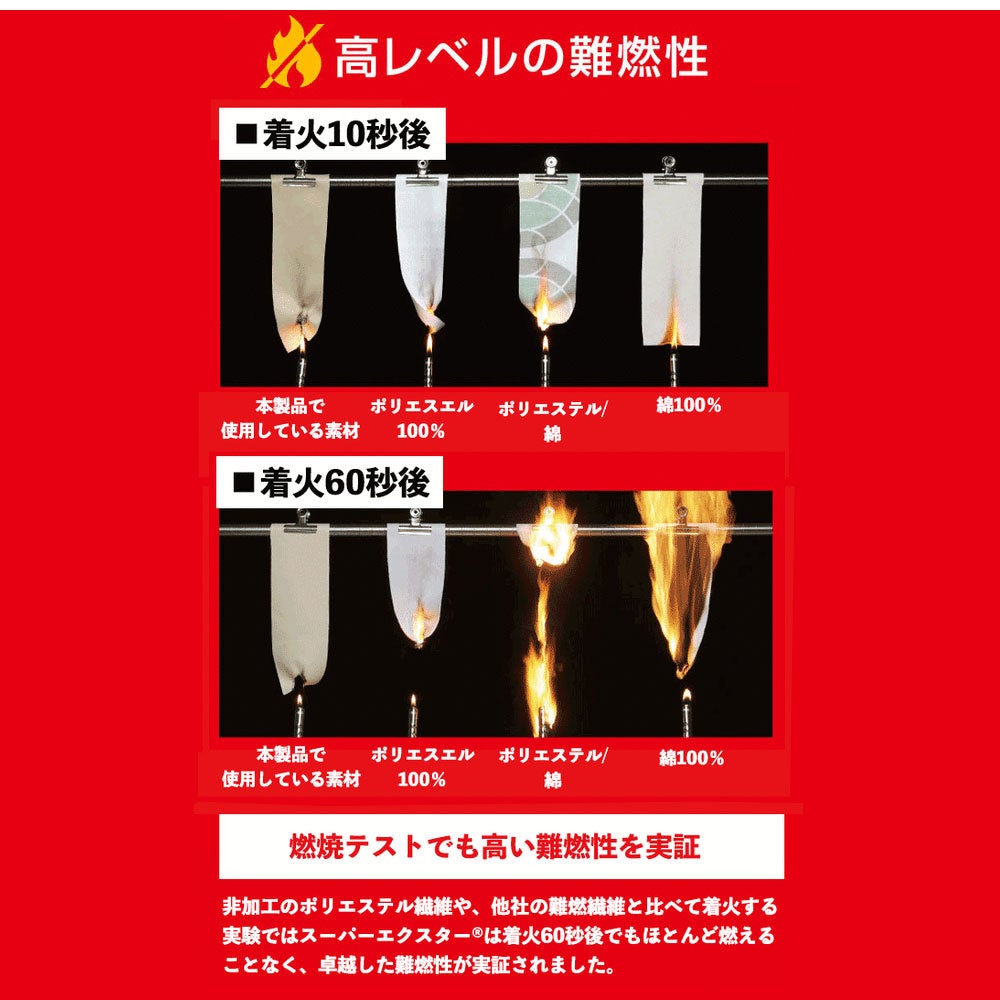 火の粉が飛んでも燃え広がりにくい素材でシワになりにくいハリのある生地を使用しています。