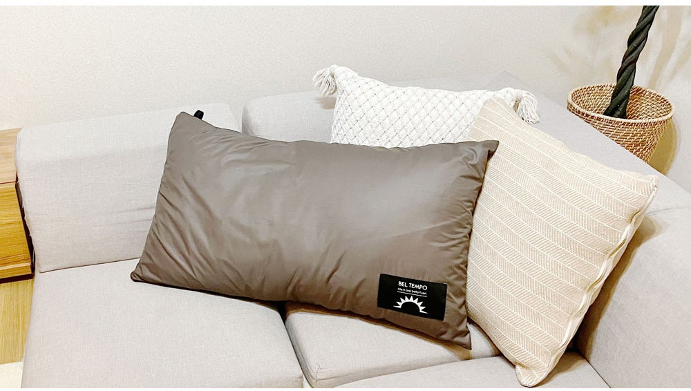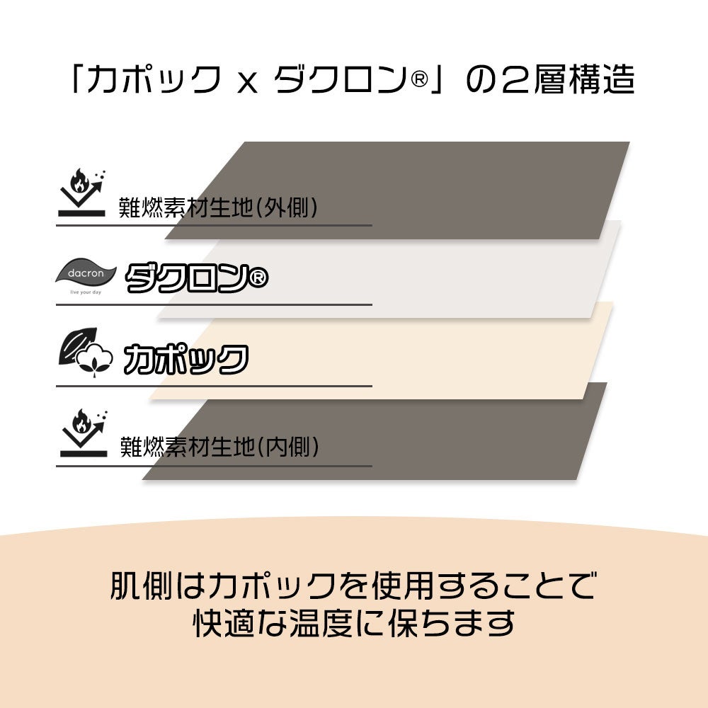 水に強く、少量でもふっくらとしっかりするダクロン®︎の層をカポックにプラスすることで、耐水性とボリューム感が生まれます。また、内側の層にカポックを使用することで快適な温度を保ち、クッション性のある理想的な構造となっています。
