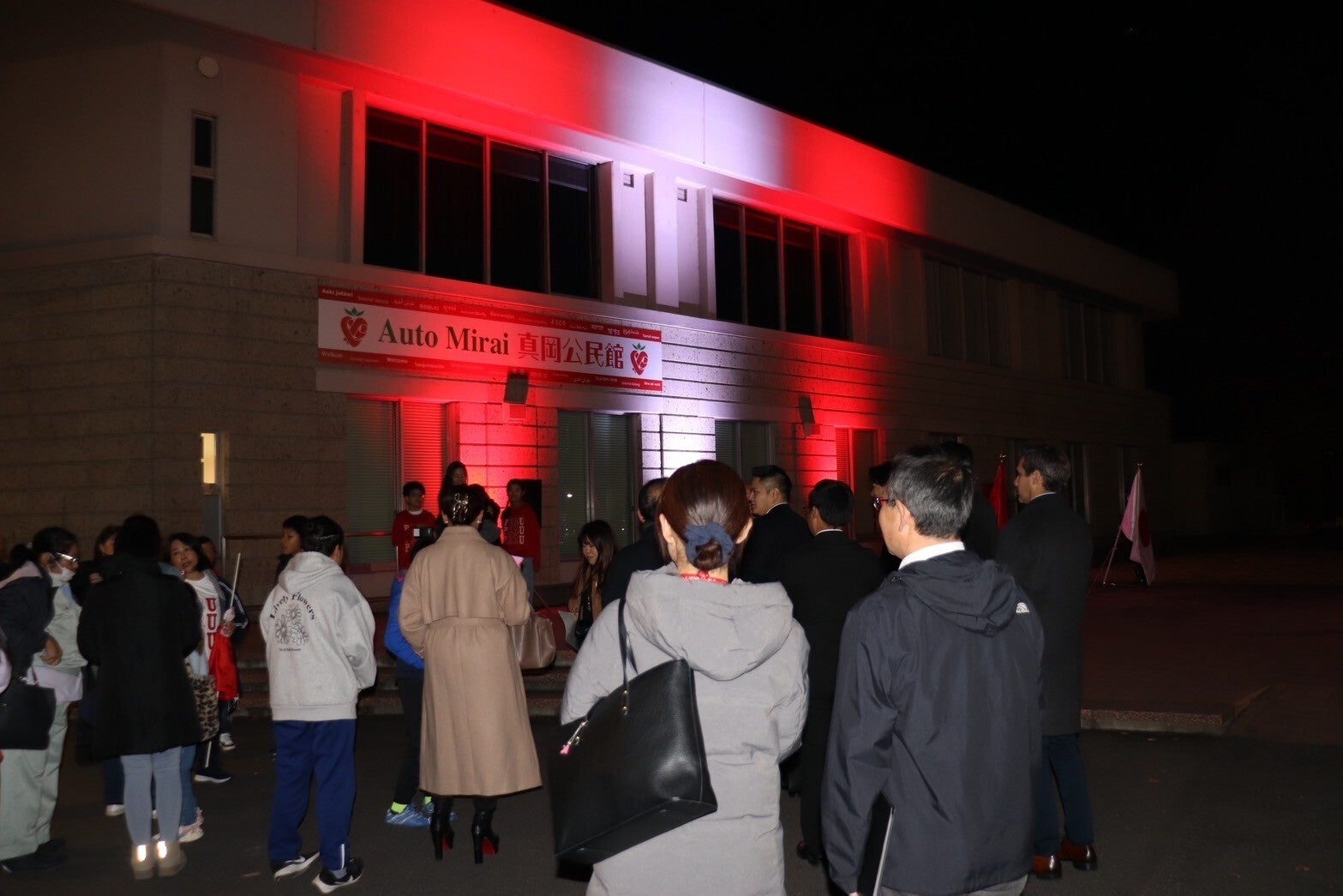 栃木県真岡市のAuto Mirai 真岡市公民館では、公民館の建物もペルー国旗のカラーでライトアップされました。