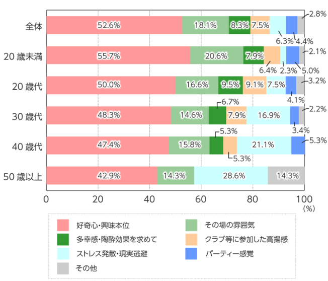 また、多くの人が好奇心や興味本位、ストレスなどがきっかけに使用を始めており、