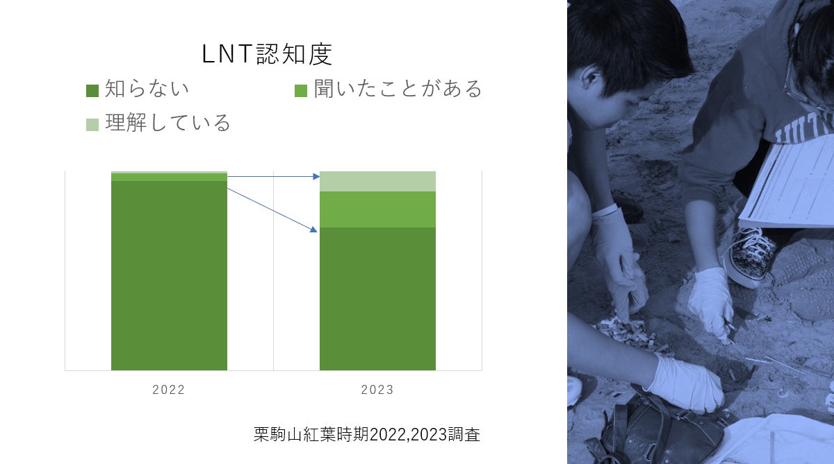 2022年当時は、栗駒高原でのLNT認知度は3%。2023年アンケートでは、33%と大きく伸びている