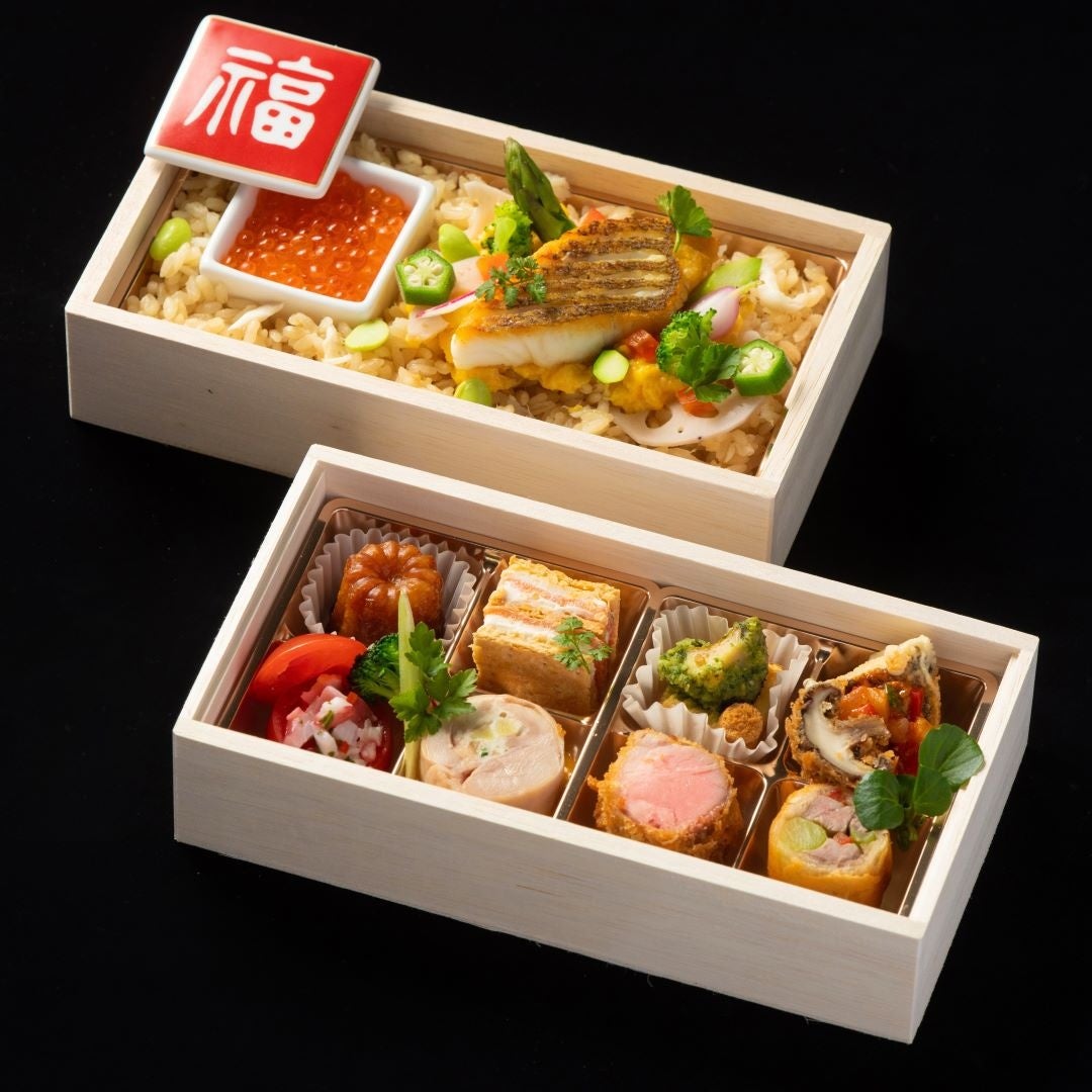 お祝いにふさわしい食材と、岐阜の食材を取り入れた【美しい二段弁当】