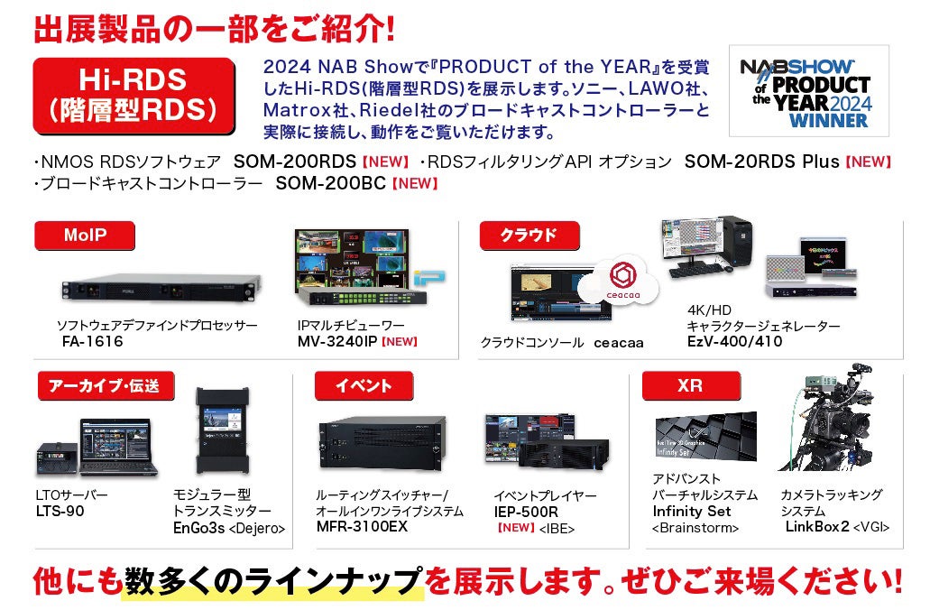 Hi-RDS(階層型RDS)をはじめ、MoIP、クラウド、XR、イベントの各種最新ソリューションを紹介
