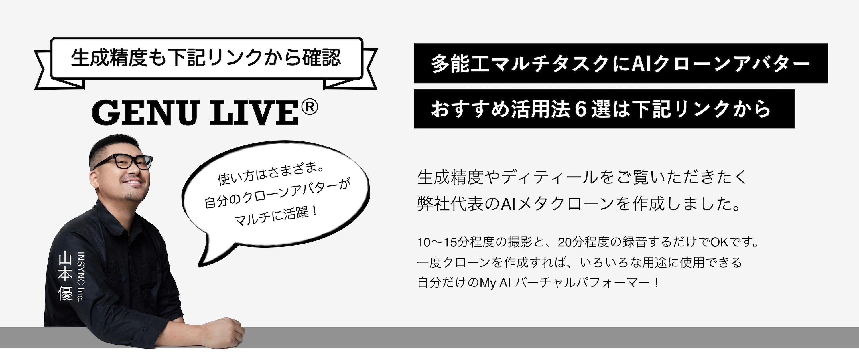 「GENU LIVE®︎」複製生成AIクローンアバターで多能工を実現できる活用法をYouTubeチャンネルで配信開始 #AI #クローン #アバター