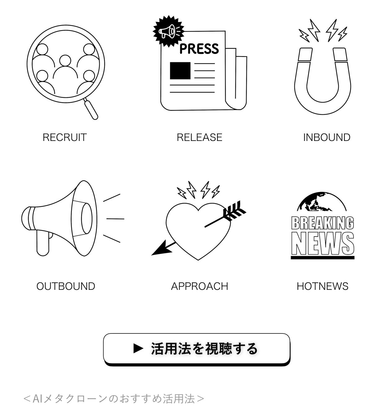「おすすめ活用法6選」を弊社代表のAIメタクローンアバターで実演。オリジナルを複製したAIクローンアバターのビジュアルやアクションの精度も同時にご確認いただけます。