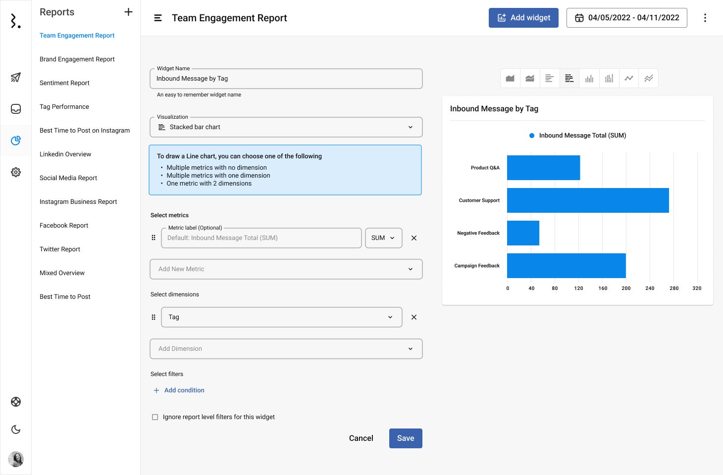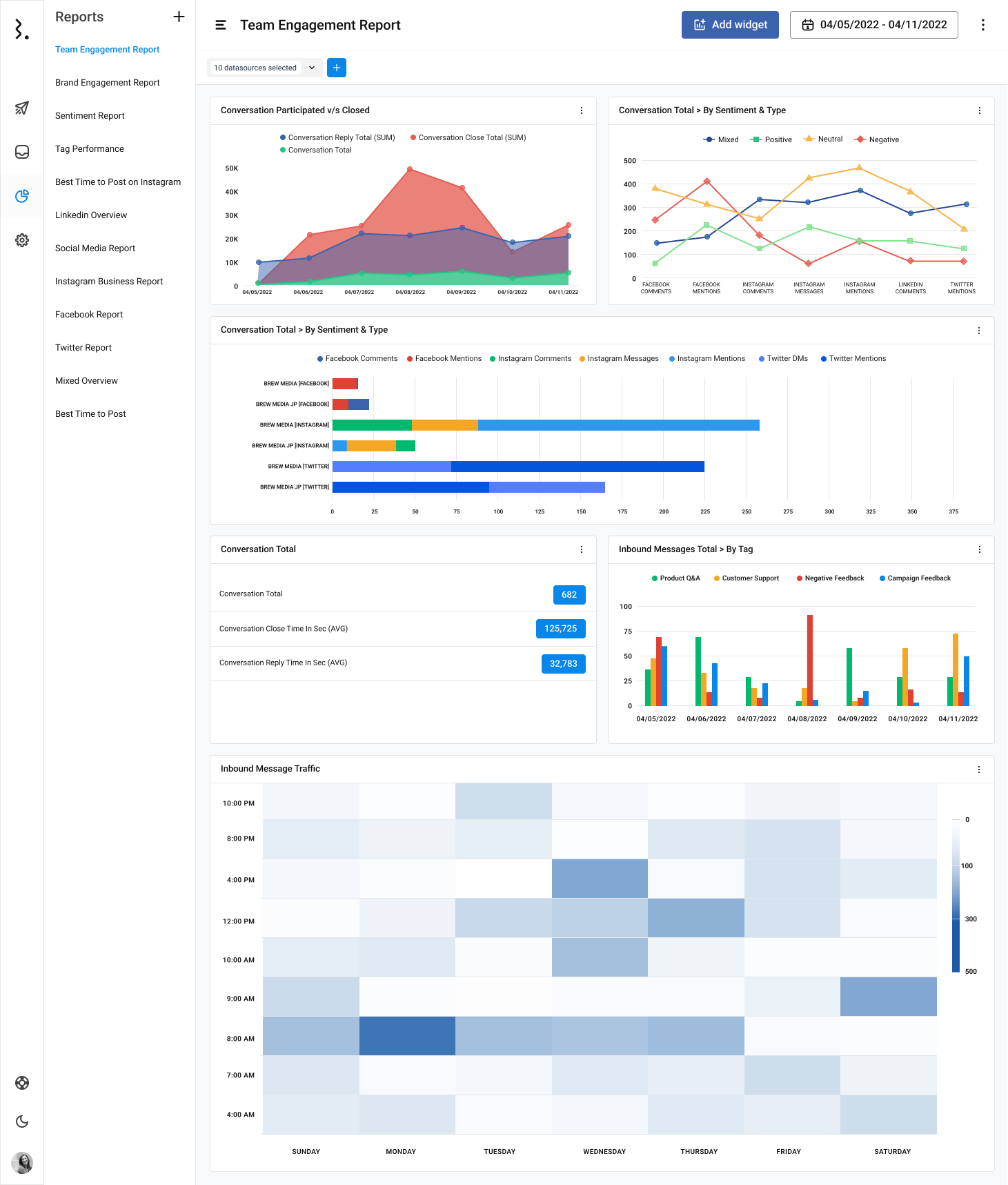 ソーシャルメディアで受け取るメッセージの種類の変化やアカウントの成長、監視体制に合わせて常に異なるデータを必要なユーザーとシェアします。