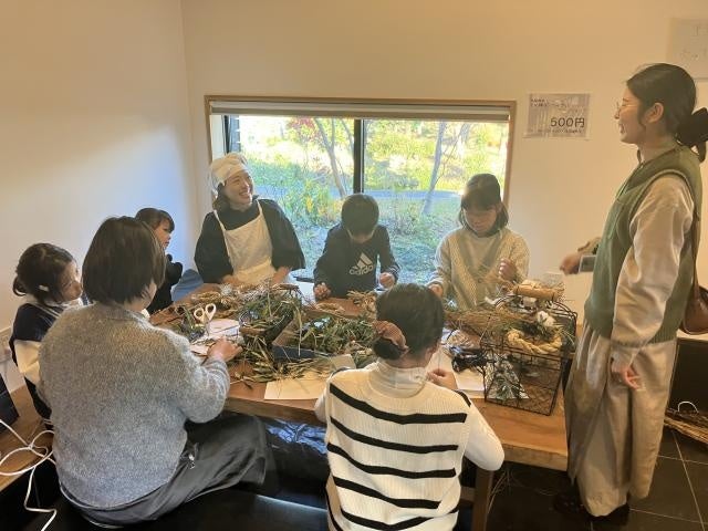 ・しめ縄&リースづくり:自然素材に触れながら、季節のしつらいを学ぶワークショップ。おむすび店が育てた無農薬の稲わらを利用しています。