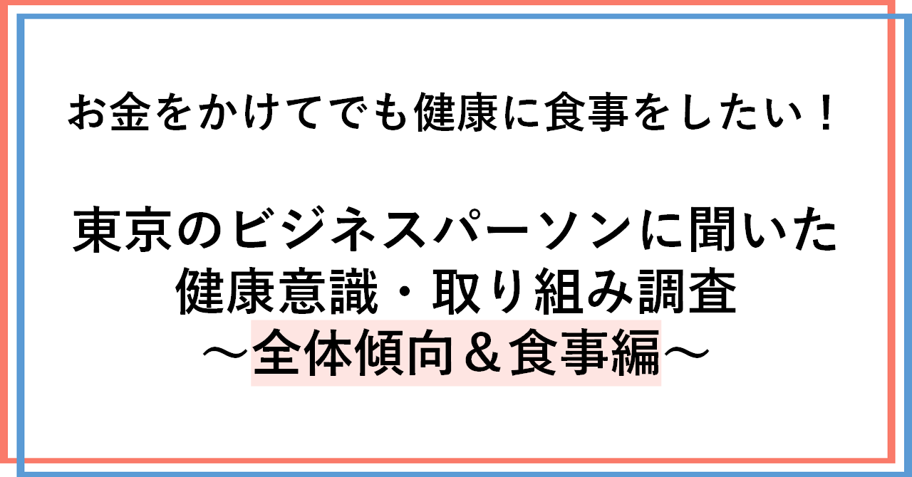 お金をかけてでも健康に食事をしたい!東京のビジネスパーソンに聞いた健康意識・取り組み調査~全体傾向&食事編~
