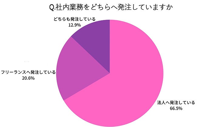 「法人」と回答した人が66.5%、「フリーランス」が20.6%、「どちらも発注している」が12.9%という結果になりました。